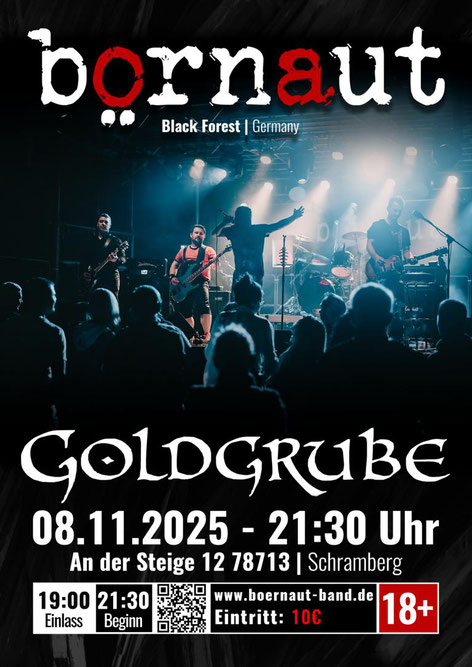 Am 08.11.2025 rocken wir mit euch zusammen die Goldgrube in Schramberg – Einlass ab 19:00 Uhr, Start um 21:30 Uhr. Tickets gibt’s für 10 € an der Abendkasse.